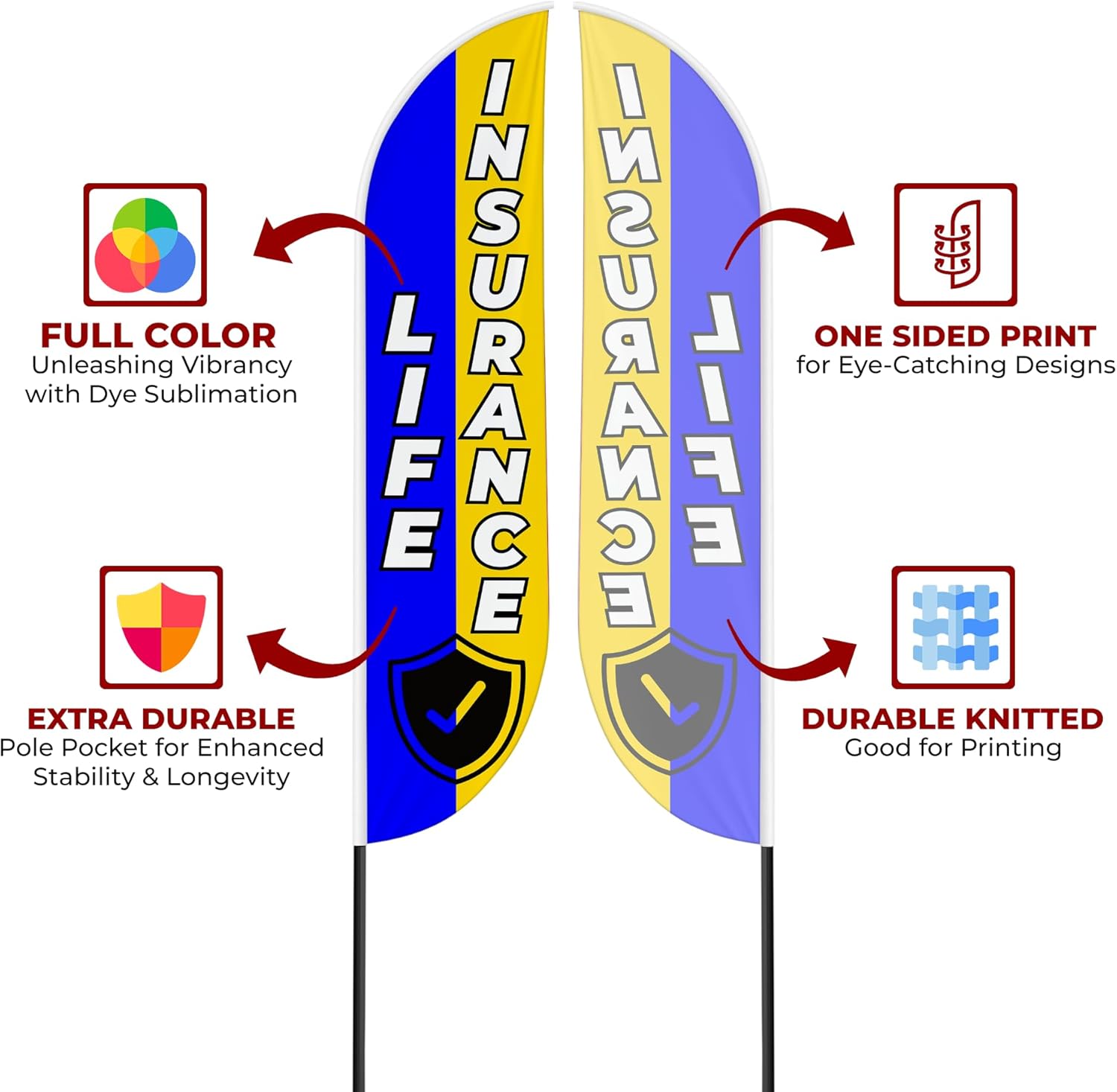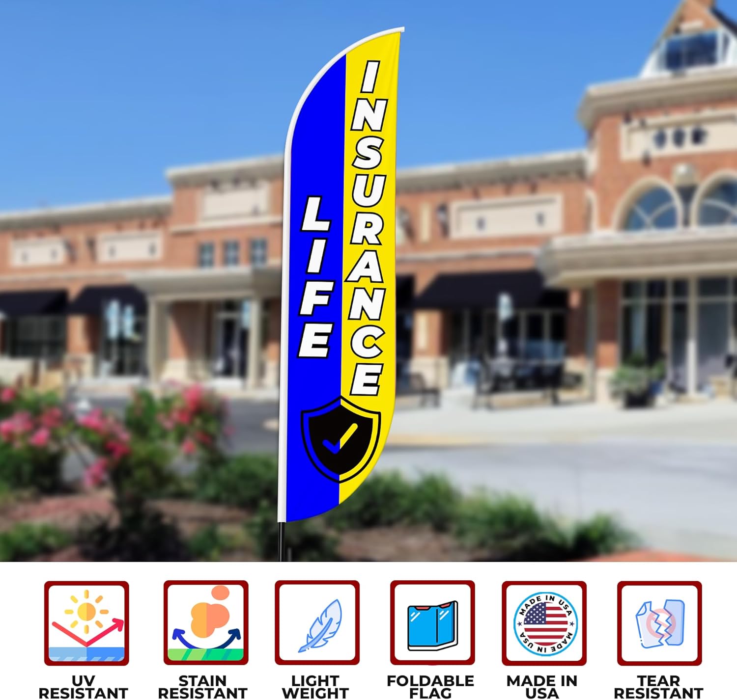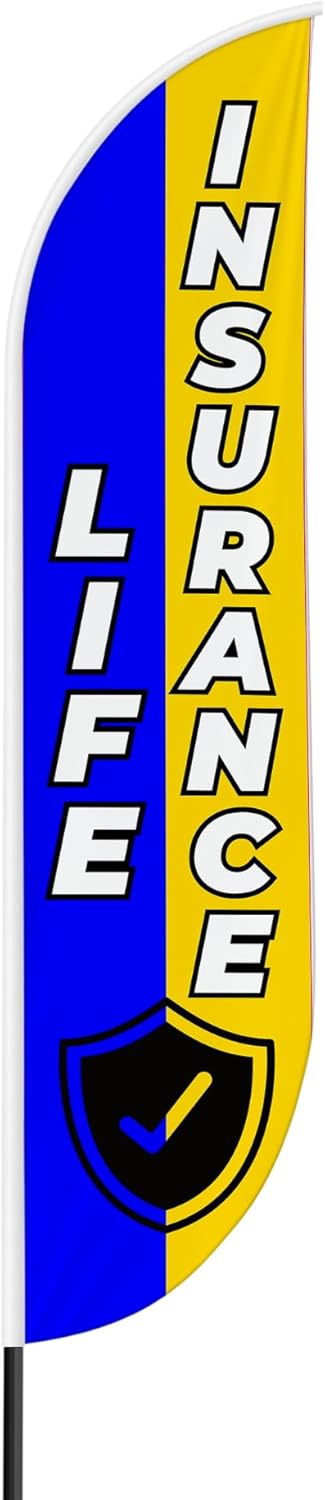 Life Insurance Sign feather flag for Outdoor by Mavis Print | 11.5 FEET Long Polyester Outdoor Banner Flag for Easy Hang | HD Print Swooper Flag Only for Insurance Advertising | Made in USA I Flag Only