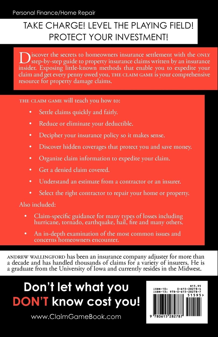 Discover the secrets to homeowners insurance settlement with the only step-by-step guide to property insurance claims written by an insurance insider. Exposing little-known methods that enable you to expedite your claim and get every penny owed you, The Claim Gameis your comprehensive resource for property damage claims.